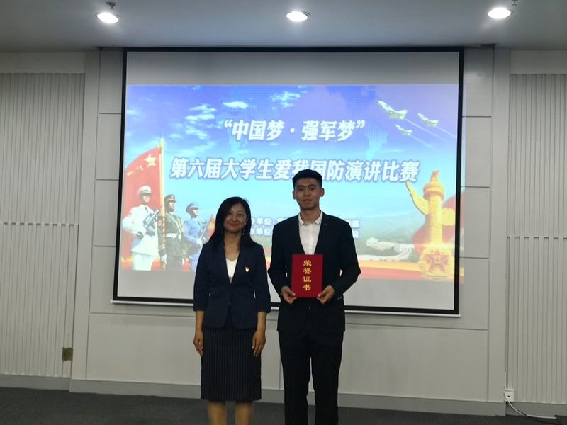 6月10日,六色网 “中国梦,强军梦”第六届大学生爱我国防演讲比赛决赛在图书馆多功能厅举办。我院英语2017-4王一卓同学荣获一等奖。