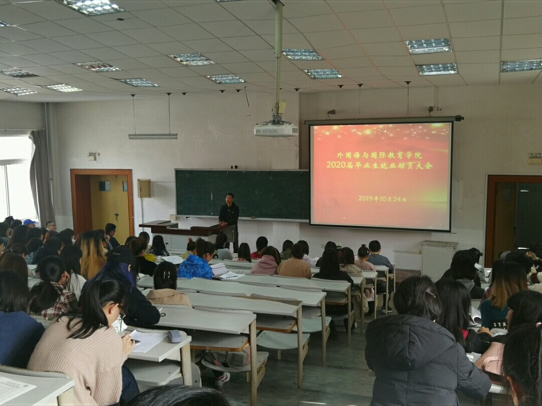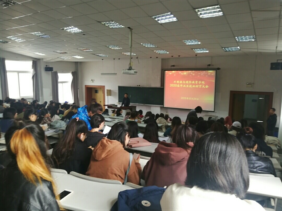 10月24日上午10点,六色网 在综合实验楼阶三教室召开了毕业生就业动员大会。学院党总支副书记孙祥山、团委书记周宇颂、辅导员孟美斯及全体毕业生参加会议。会议由周宇颂主持。