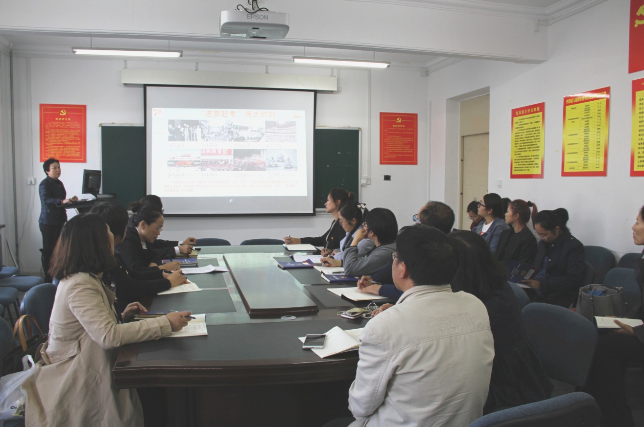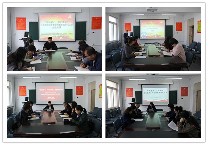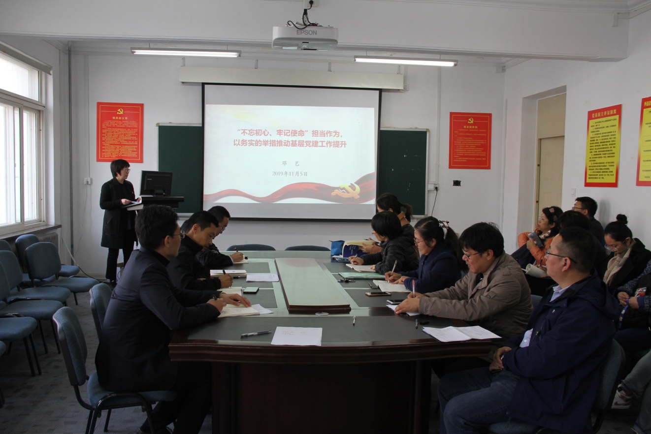 党总支书记邓艺以“‘不忘初心、牢记使命’担当作为,以务实的举措推动基层党建工作提升”为题,分别从“党史、新中国史是一部中国共产党人担当作为、不懈奋斗的光辉历史”、“进入新时代,东北振兴发展呼唤新担当,需要新作为”、“党的初心使命要求党员干部勇于担当、主动作为”、“要用优良的业绩体现担当、验证作为”四方面,为学院全体教职工讲授专题党课。