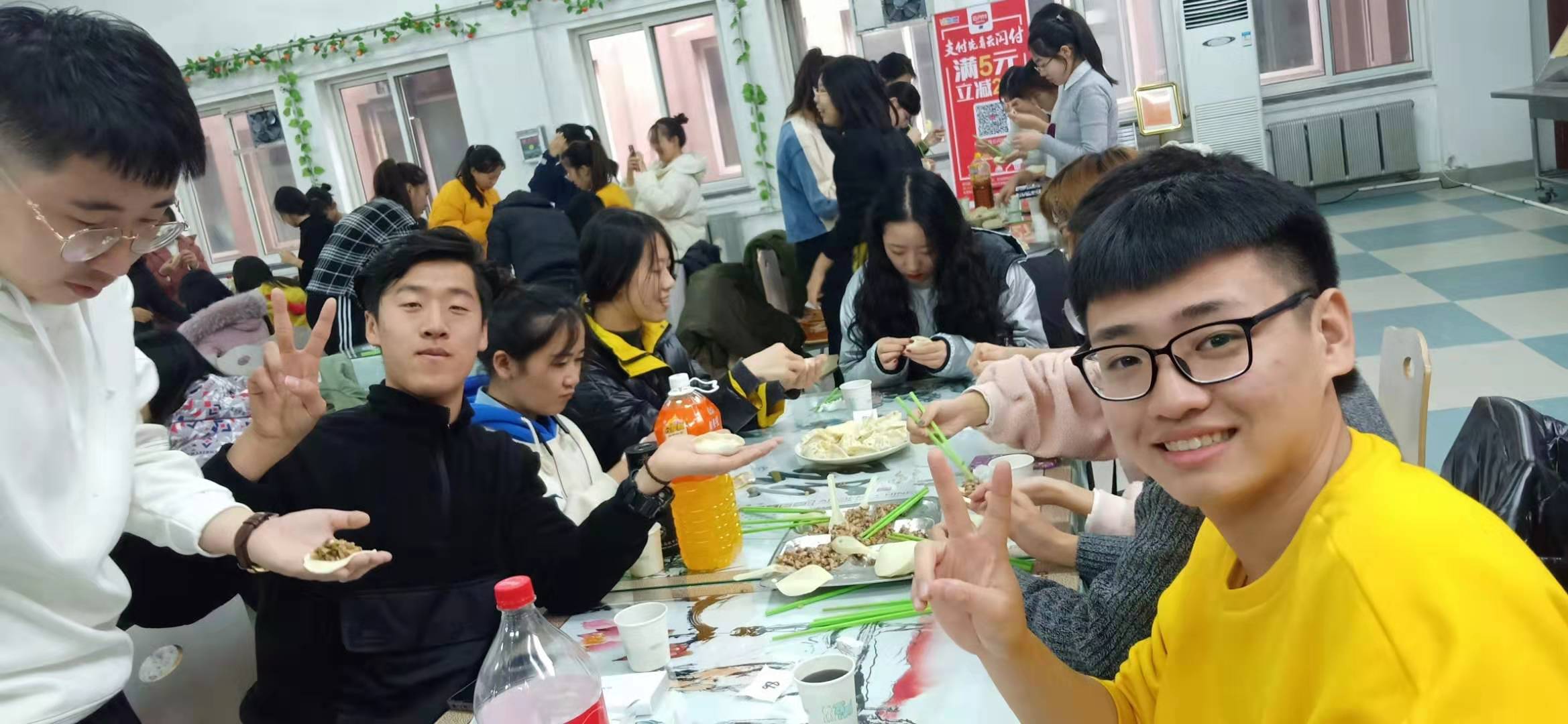1222日,六色网 在渤海校区食堂教师餐厅开展 “庆冬至,包饺子”活动,团委书记周宇颂和学院2019级全体学生参加本次活动,喜迎冬至。