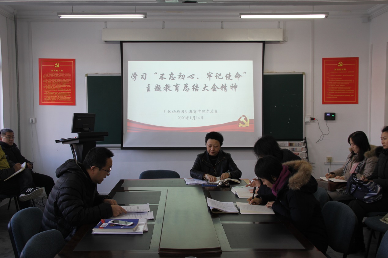会上,全体教职工集体学习了习近平总书记在“不忘初心、牢记使命”主题教育总结大会上的讲话精神、学校“不忘初心、牢记使命”主题教育总结大会精神。同志们结合学习内容与开展主题教育情况进行了交流。与会同志认为,习近平总书记的重要讲话立意高远、思想深邃、内涵丰富,具有很强的政治性、思想性、理论性、指导性。大家表示一定要认真学习领会,不断增强“四个意识”、坚定“四个自信”、做到“两个维护”,全面落实党中央各项决策部署,巩固主题教育成果,推动学院高质量发展。