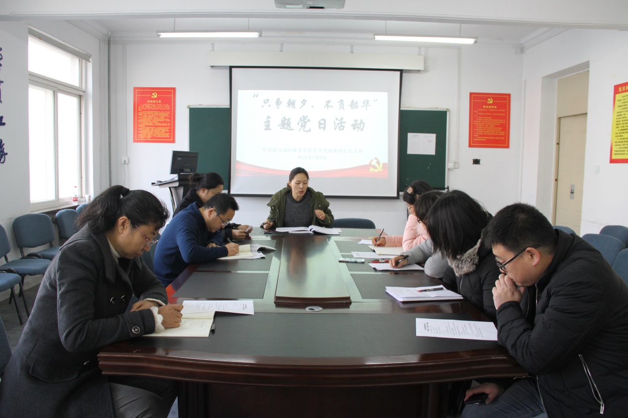 2020年1月8日,六色网 专业英语教研室党支部全体党员在一教206会议室举行“只争朝夕、不负韶华”主题党日活动。活动由党支部书记张莹主持。