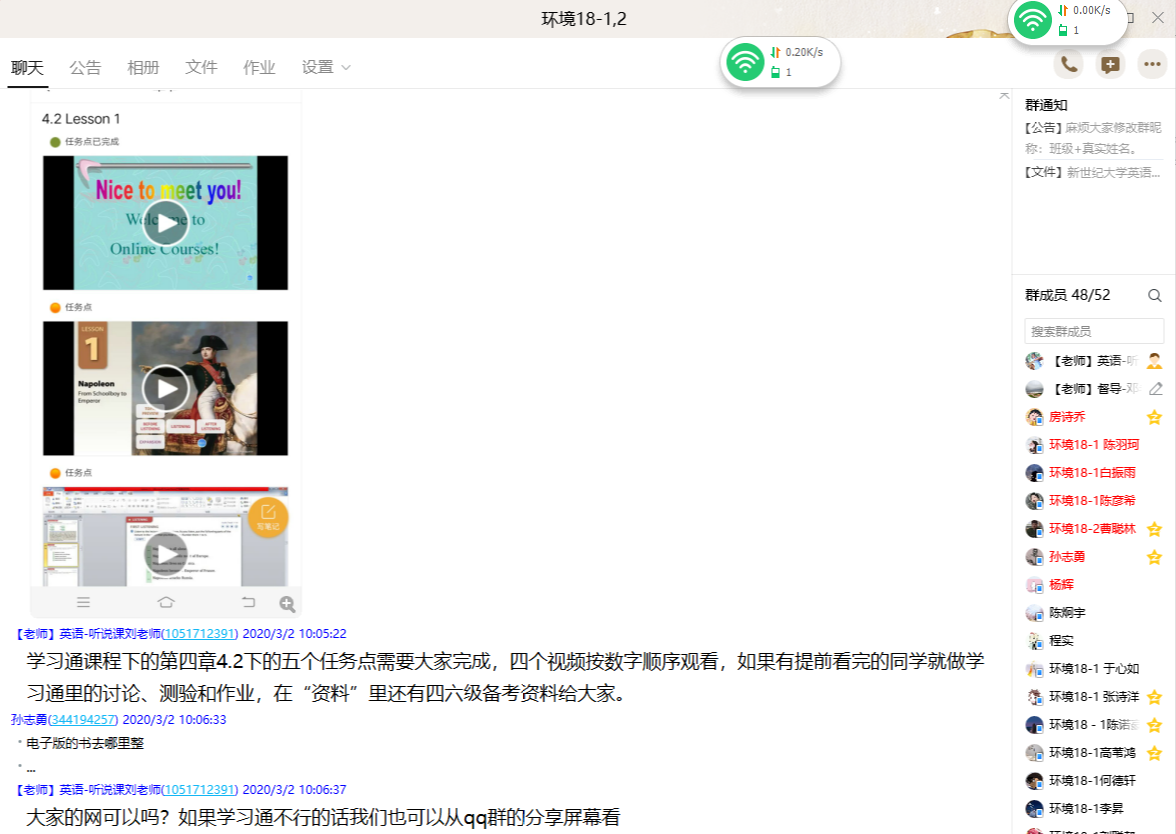 开课的前两周,教学督导组全体成员通过在线听课的方式深入到教师的课堂听课33次,课后填写“六色网 在线课程教学督导表”,及时反馈意见建议,以此推动教研室责任落实,促进授课教师及时改进教学工作。
