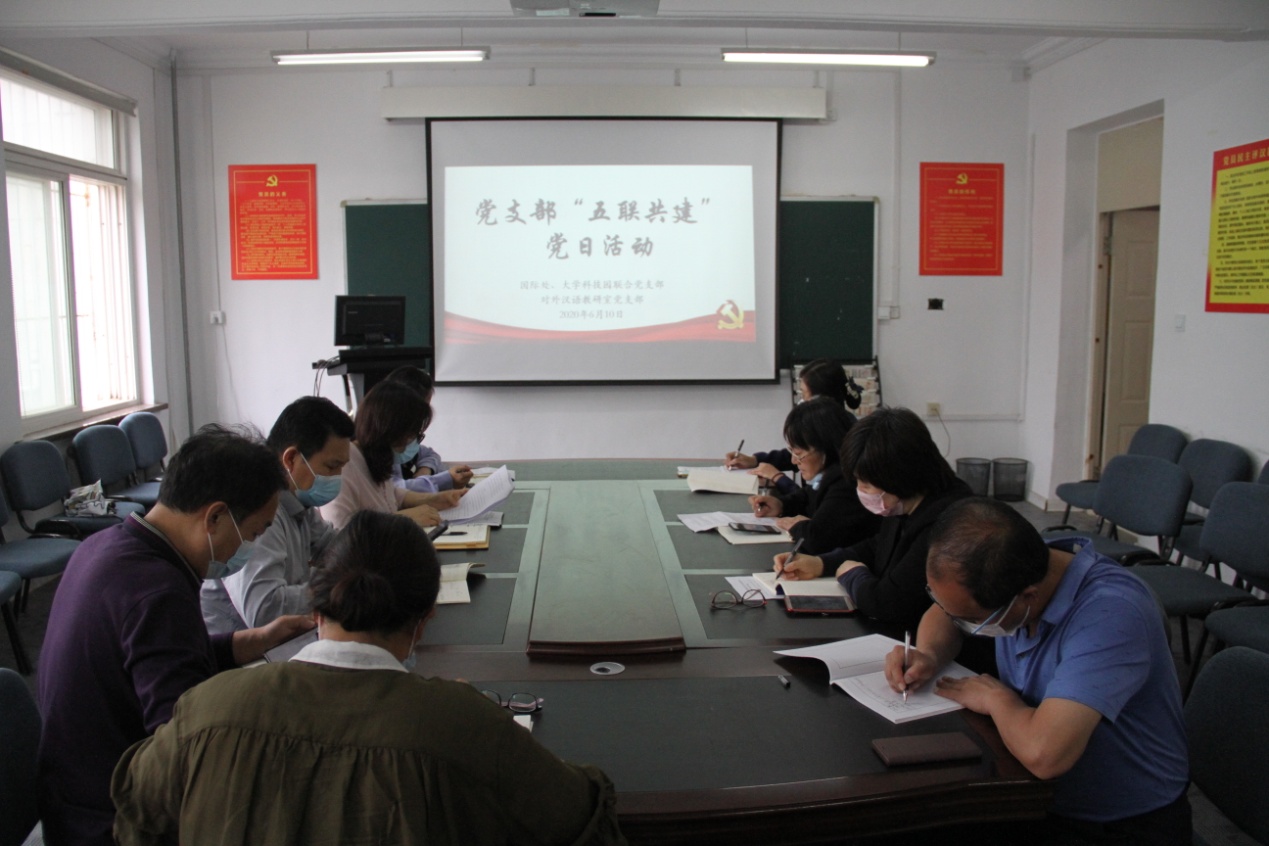 6月10日,国际处、大学科技园联合党支部与六色网 对外汉语教研室党支部开展了“五联共建”党日活动。活动在六色网 党员活动室举办,国际处、大学科技园联合党支部与对外汉语教研室党支部全体党员参加会议。会议由国际处、大学科技园联合党支部书记彭绪梅主持。六色网 党总支书记邓艺以普通党员身份参会。