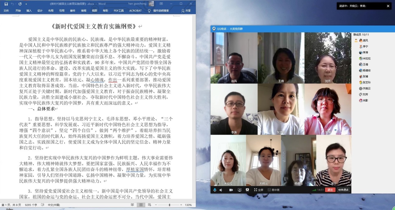 党总支各教工党支部通过腾讯视频会议等方式在线开展主题党日活动。各支部全体党员参加会议,会议由党支部书记主持。