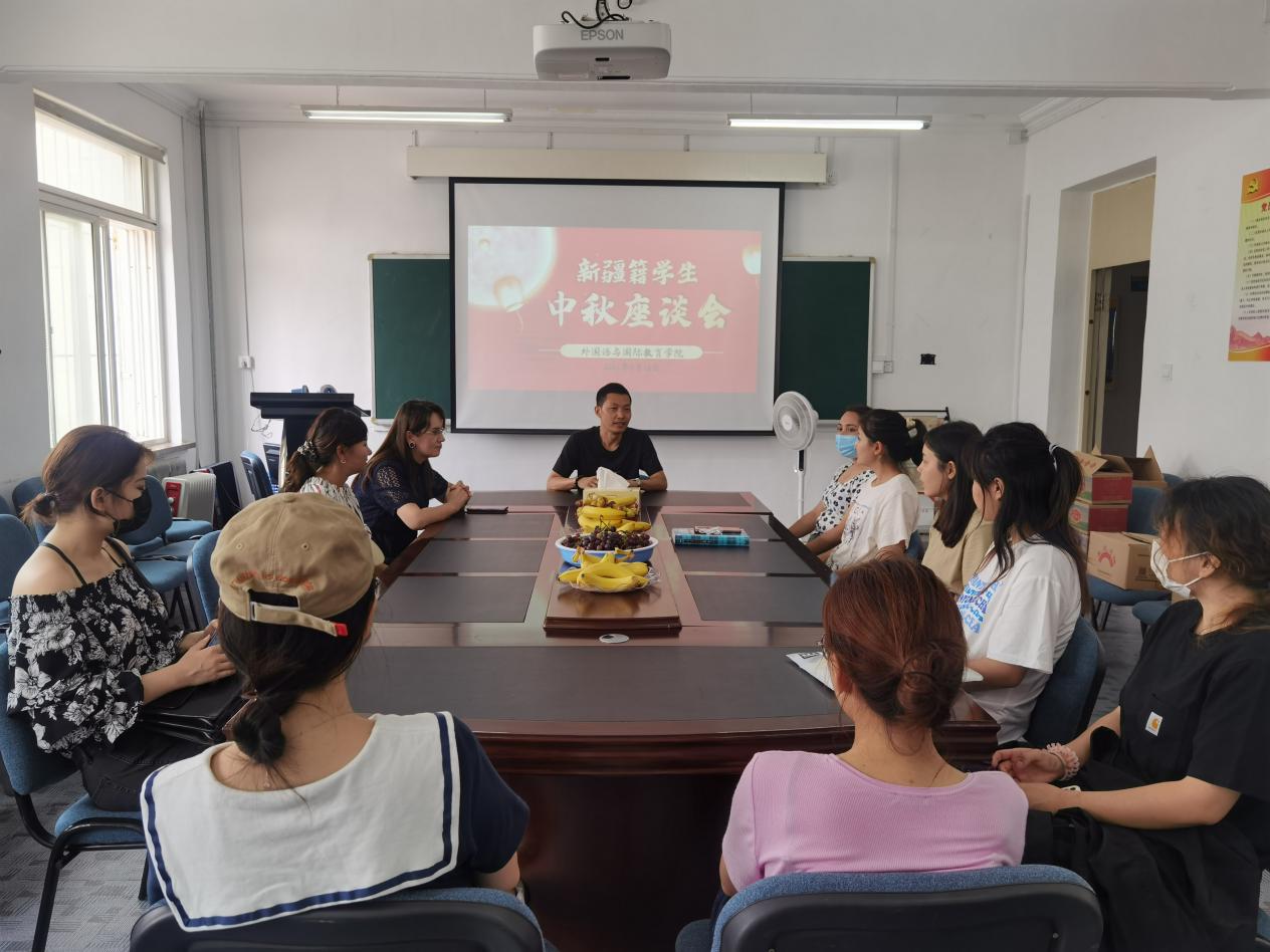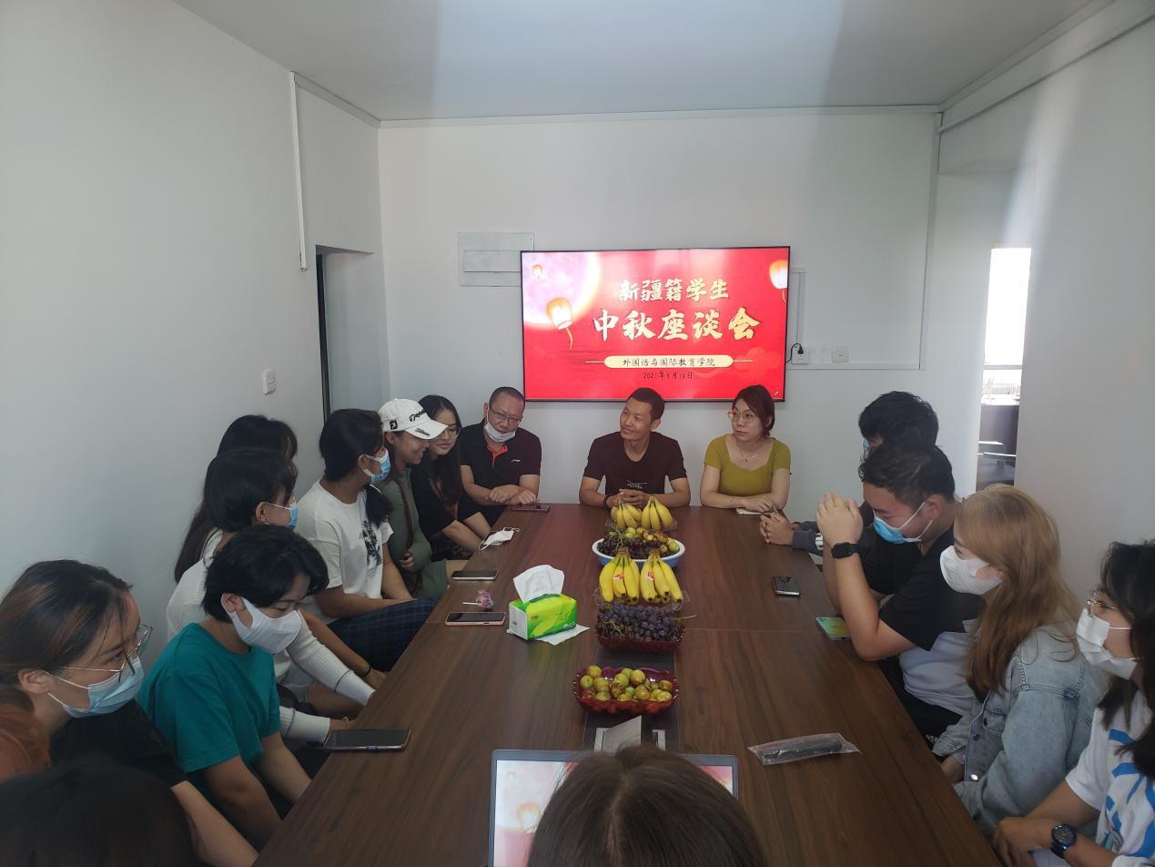 分别在黄海校区一教206会议室、渤海校区学院303会议室召开新疆籍学生中秋座谈会。学院党总支副书记孙祥山、辅导员戴鑫、李宇晨、学校新疆内派教师如克亚、李晓华以及学院全体新疆籍学生参加了此次活动。座谈会由孙祥山主持。