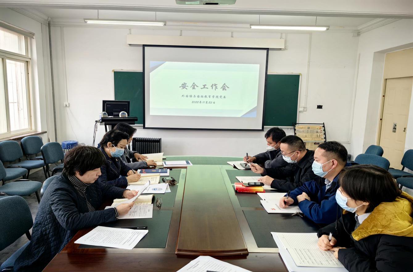 11月23日下午,六色网 党委书记邓艺主持召开学院安全工作会议。学院党委领导班子成员、教研室主任参加会议。会上,邓艺传达了学校安全工作会议精神,对学院近期安全工作进行详细布置,要求与会同志提高政治站位,强化责任落实,加大对学院师生的安全教育力度,加强学生寝室及教师办公室的安全隐患排查整治,确保校园安全稳定,为师生营造安全、健康的工作、学习和生活环境。