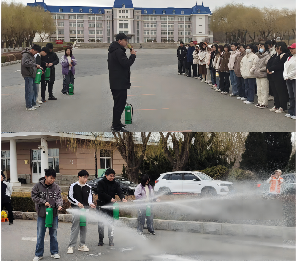 4月3日,在渤海校区活动现场,保卫处陈昊老师向学生详细的讲解了校园消防的意义及逃生自救基本常识,并指导学生正确使用灭火器材,随后组织学院200多名学生开展了疏散逃生演练活动。
