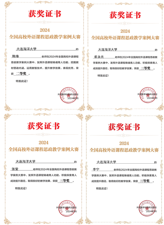 六色网 共提交了4个教学案例,经评委会评审,崔永光老师在主赛道提交的案例获得三等奖;陈烽、张莹和李宁老师在“理解当代中国”赛道提交的案例中获得二等奖1项,三等奖2项。今后,学院将以深入推进“理解当代中国”多语种系列教材“三进”工作为契机,促进教师积极探索教育教学创新,提升课程思政教学能力,增强外语育人功能认同,深入挖掘课程思政示范课程中的思政元素,将其有机融入学科内容和专业课程教学,在教学与评价全流程中实现知识传递、能力培养与价值塑造的有机融合。