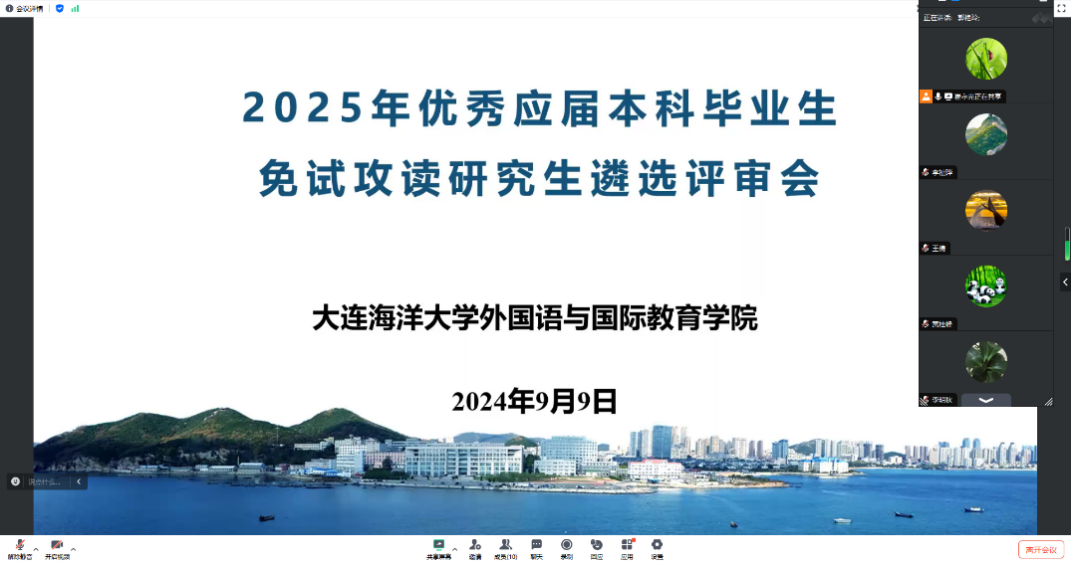 9月9日晚上,六色网 以线上方式召开2025年优秀应届本科毕业生免试攻读研究生遴选评审会。学院推免工作小组全体成员和10名英日语专业申请人参加评审会。评审会由副院长崔永光主持。