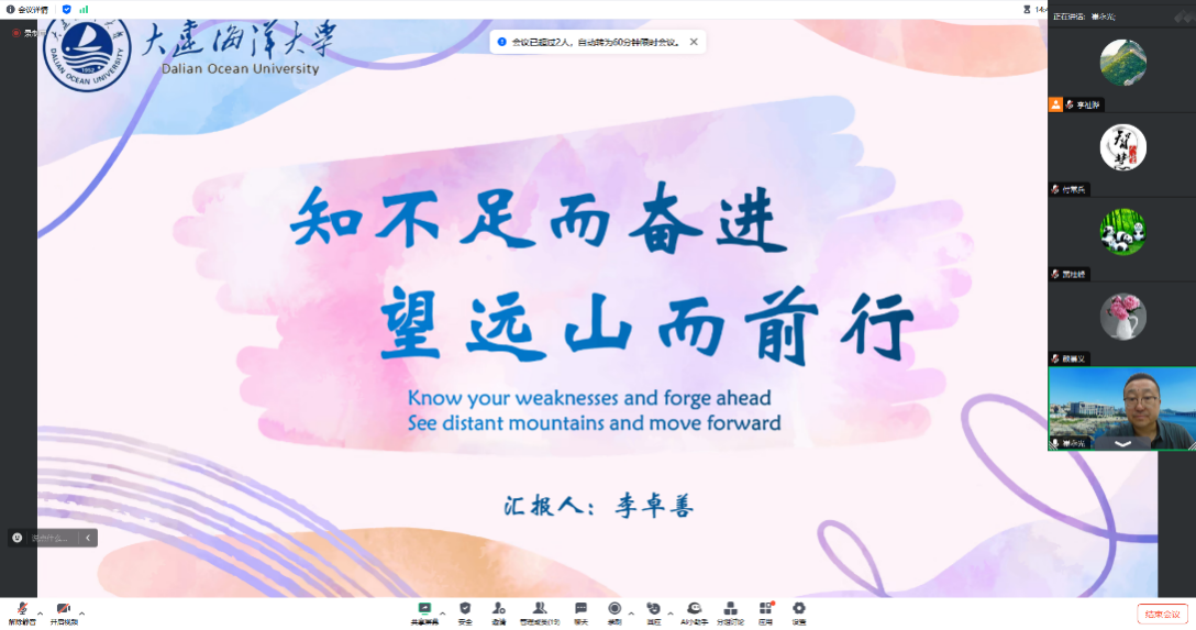 按照《大连海洋大学推荐优秀应届本科毕业生免试攻读研究生遴选工作办法》和《关于做好2025年推荐优秀应届本科毕业生免试攻读研究生遴选工作的通知》要求,学院制定了推免工作实施细则,成立推免生遴选工作领导小组,按照程序要求,对照推荐条件严格审查申请人的推荐资格。评审会上,领导小组首先召开会议,明确遴选工作程序、严明评审纪律要求。之后,英日语专业10名申请人从个人情况、学业成绩、创业竞赛、现实表现等方面进行了陈述与展示。最后,评委按照学生的现实表现进行现场打分。经过综合评定,学院拟推荐日语专业肖佳邑、王骏,英语专业李卓善、李佳璐、张银哲、王诗语共6名优秀应届本科毕业生免试攻读研究生。