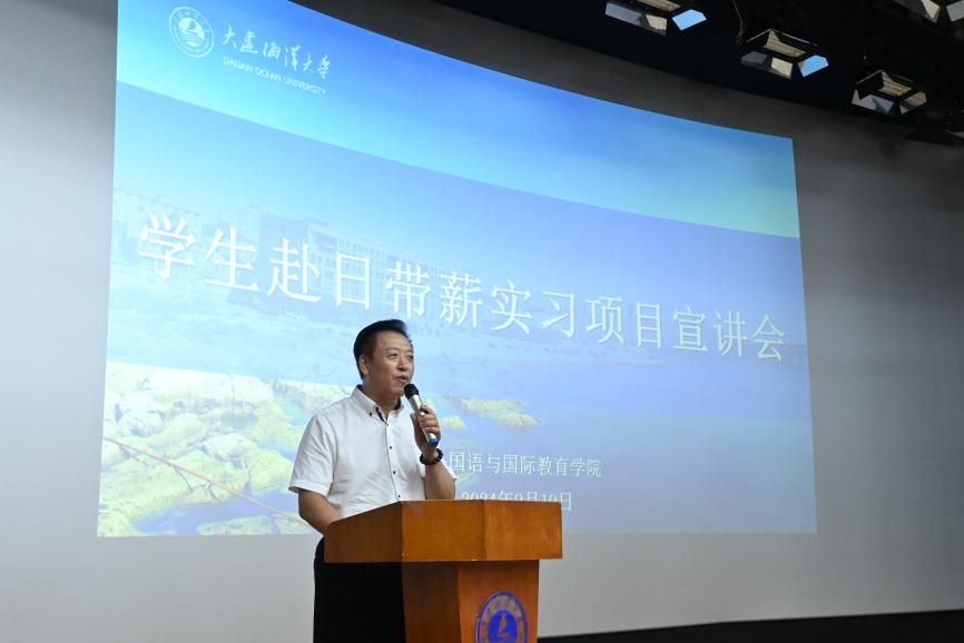宣讲活动中,徐朝法从提升外语专业水平、开阔大学生国际视野、增强未来就业竞争力等方面向在场师生介绍了带薪实习项目的重要意义。张超从项目基本情况、申请流程、实习待遇等方面介绍了大学生赴日带薪实习项目的具体案例。薛世勇介绍了下一批带薪实习项目情况,并为在场学生进行答疑解惑。