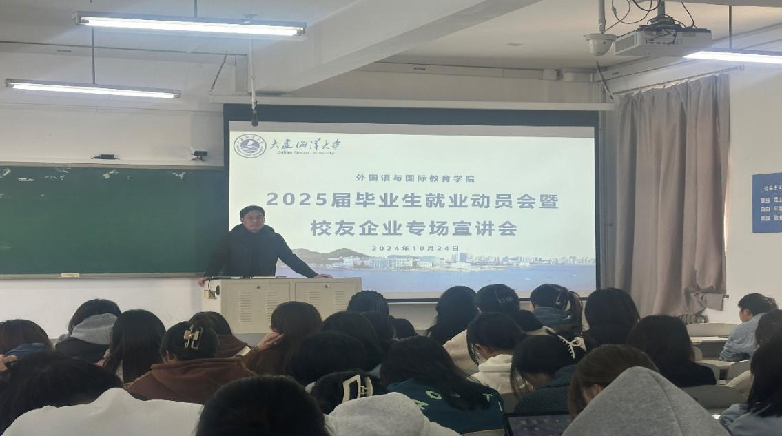10月24日,六色网 在大黑石校区二教302成功召开2025届就业动员大会。威海兴亚船务有限公司邮轮业务部经理、1992级校友郭玉光和2025届毕业生参加会议。学院团委书记周宇颂主持会议。