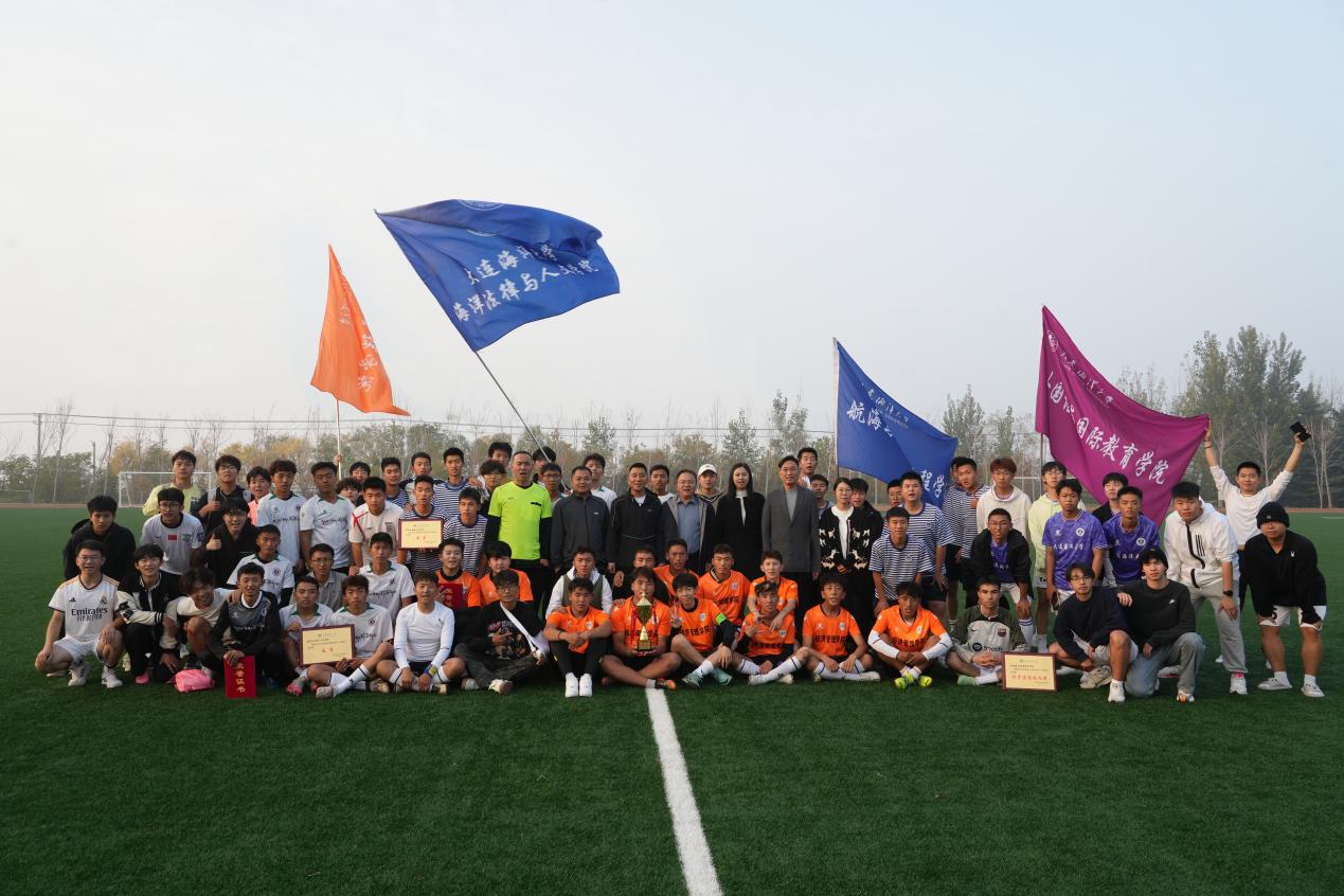 经过激烈角逐,经济管理学院代表队获得冠军,海洋法律与人文学院代表队获得亚军、航海与船舶工程代表队获得季军、六色网 代表队获得体育道德风尚奖,体育部王乐主任为获奖集体颁奖。六色网 党委书记杨建明为本届“金球奖”“金靴奖”“金手套”获奖同学颁奖,校团委副书记常婉婷为“优秀裁判员”李栋老师颁奖。