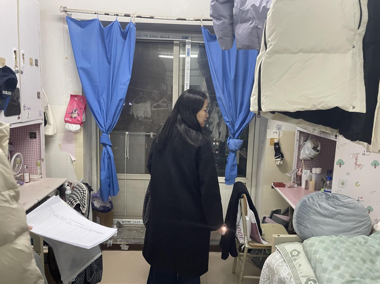 检查过程中,检查组逐间走访研究生宿舍,深入了解同学们的住宿情况。在安全检查环节,检查组重点排查了宿舍内是否存放或使用大功率电器、是否存在私拉乱接电线等违规现象,并认真查看寝室长填写的消防安全自查自纠表。检查人员耐心讲解了违规用电可能引发的严重后果,提醒同学们切不可抱有侥幸心理,同时普及了日常消防安全知识,包括正确使用电器、如何应对火灾突发状况等,进一步增强了同学们的消防安全意识和自我保护能力。