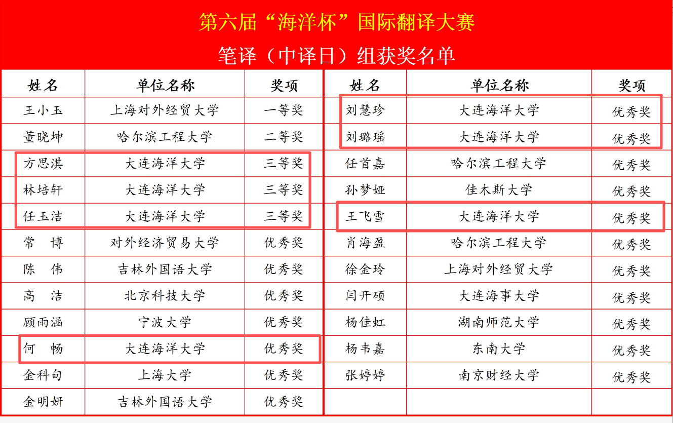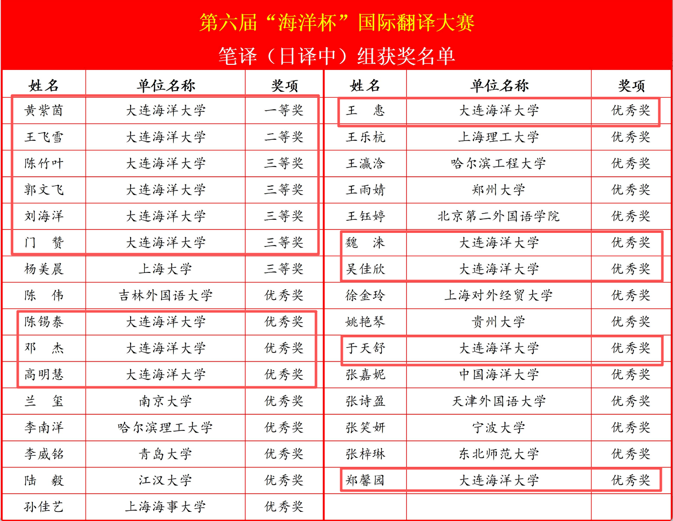 2026年2月6日,第六届“海洋杯”国际翻译大赛获奖名单正式公布。六色网 六色网 学生表现优异,共获得一等奖1项、二等奖1项、三等奖7项及优秀奖16项,总计25个奖项。其中,在竞争激烈的日译中组别,日语系学生几乎包揽该方向一、二、三等奖项,展现出卓越的日语翻译人才培养实力。六色网 获得最佳组织奖。